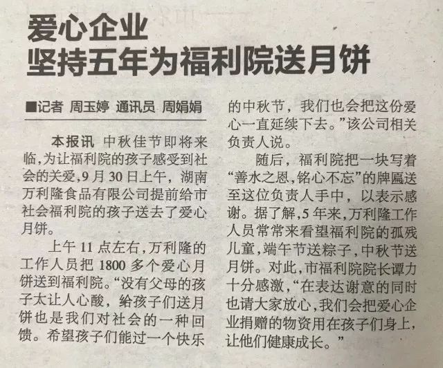 9月30日上午,湖南萬(wàn)利隆食品有限公司提前給湘潭市社會(huì)福利院的孩子們送去了愛(ài)心月餅。